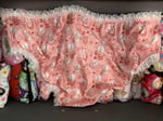 Step out in maximum holiday cheer and maximum ruffles with these ultra-feminine, full-coverage briefs. Crafted from a silky soft pink satin-feel fabric, they are completely covered in an enchanting print of snowmen, cute Christmas trees, and tiny winter motifs. The luxury is dialed up with generous, multi-layered white ruffled lace trimming the waist and leg openings, creating a gorgeous, pin-up silhouette. But beware the secret indulgence: hidden inside the cotton gusset is the "Squeaky Secret" a minuscule, pressure-activated chip that lets out a very faint, yet distinct, "honk!" whenever you sit down quickly or cross your legs. This garment is for those who love their lingerie sweet, frilly, and just a little bit ridiculous. (Not actually included but thought it would be funny)