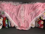 This oversized pink pair offers a sweet, romantic aesthetic with its soft pastel base, delicate pink bows, and a generous frilly white trim that frames the edges. The fabric is smooth and comfortable, designed to provide full coverage while maintaining a light, feminine silhouette. The white ruffle detailing adds movement and charm, making the pair feel both playful and elegant. Finished with neatly placed bows for a touch of refinement, these XL knickers are ideal for those who enjoy a bold, ultra-feminine style with a classic frilled finish.