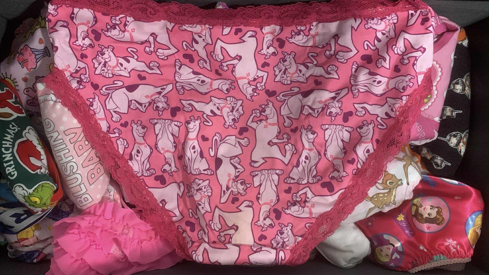 A pink pair covered in playful Scooby-Doo illustrations surrounded by tiny hearts, framed with dark pink lace around the waistband and legs. Soft, stretchy, and irresistibly girlish, they mix cartoon charm with a subtle flirty touch. Ideal for anyone who secretly believes they’re the animal of their friend group.